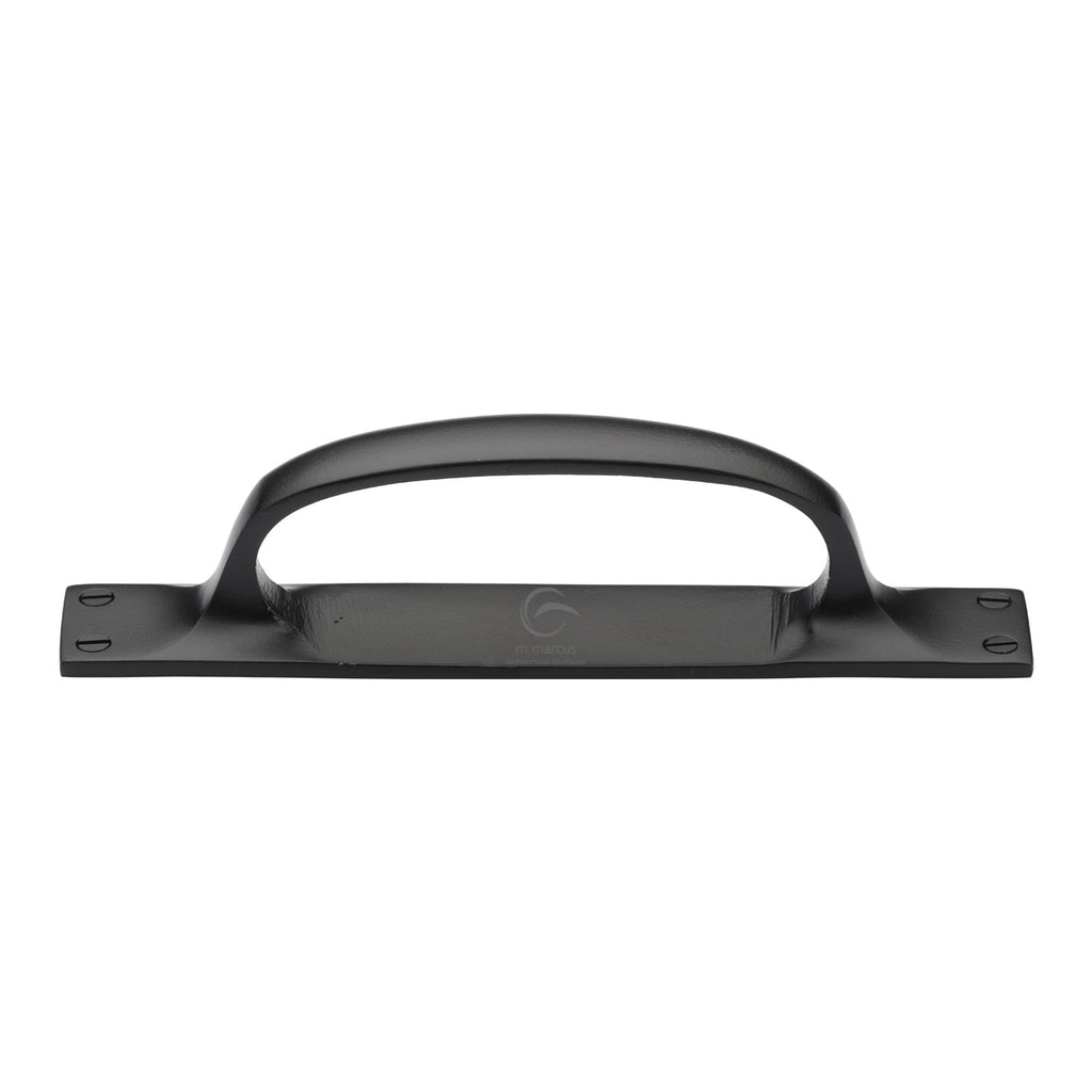 Matt Black Rustic Iron Cabinet Pull Handle On Plate 228mm - FB1142 228