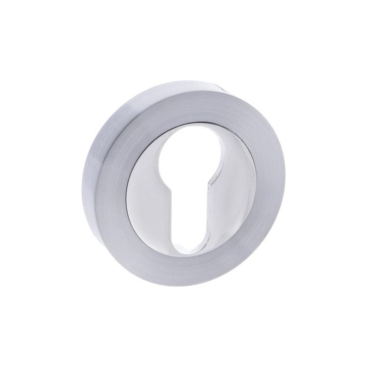 Mediterranean Euro Escutcheons on Round Rose - Satin Chrome/Polished Chrome - MESCESCPC