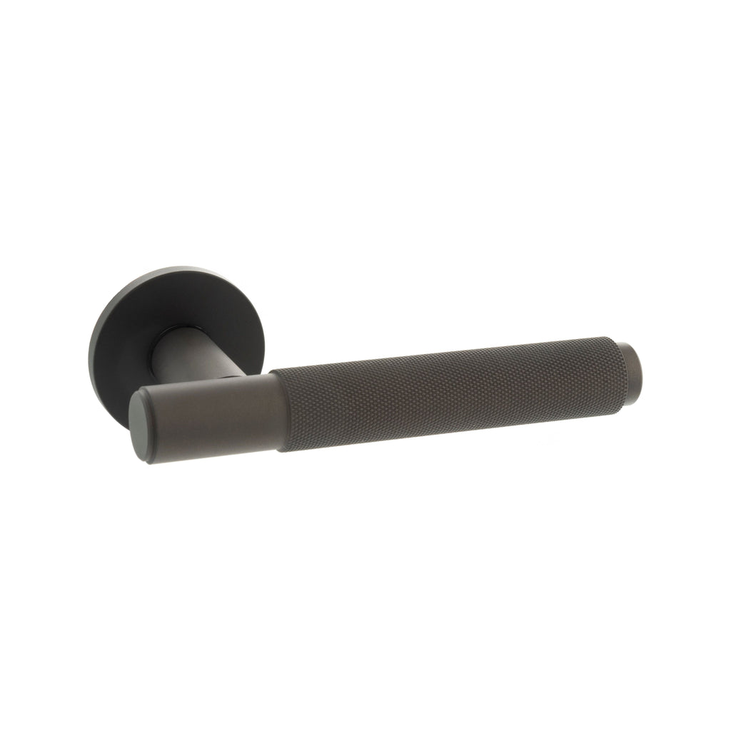 Millhouse Brass Crompton Knurled Lever Door Handle on 5mm Slimline Round Rose - Urban Dark Bronze - MHSR100UDB