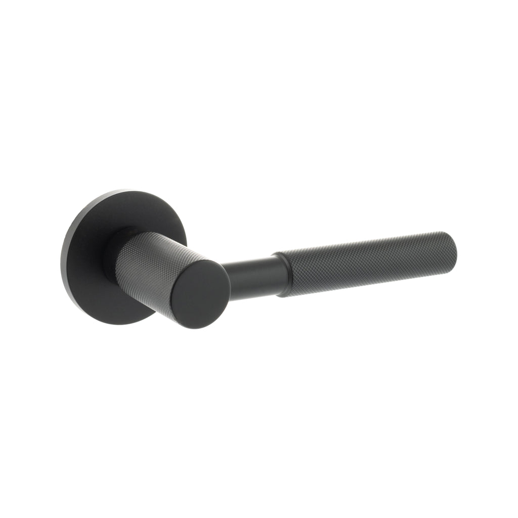 Millhouse Brass Mason Knurled Lever Door Handle on 5mm Slimline Round Rose - Matt Black - MHSR500MB