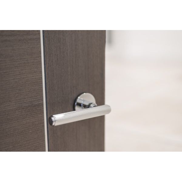 Millhouse Brass Stephenson Knurled Lever Door Handle on 5mm Slimline Round Rose - Polished Chrome - MHSR250PC