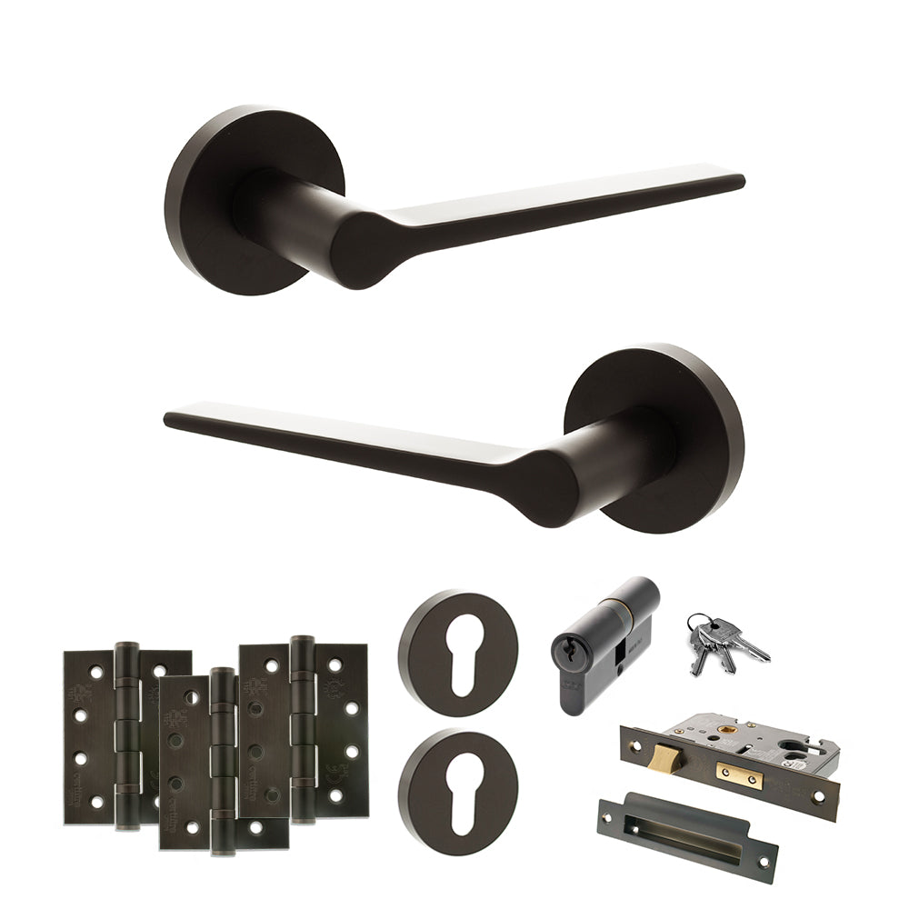 Senza Pari Laviano Door Handle Pack (Euro Lock Set - 3" CE Sashlock, 4" Fire Rated Hinges x3) - Urban Dark Bronze - ADPSPR180UDB23