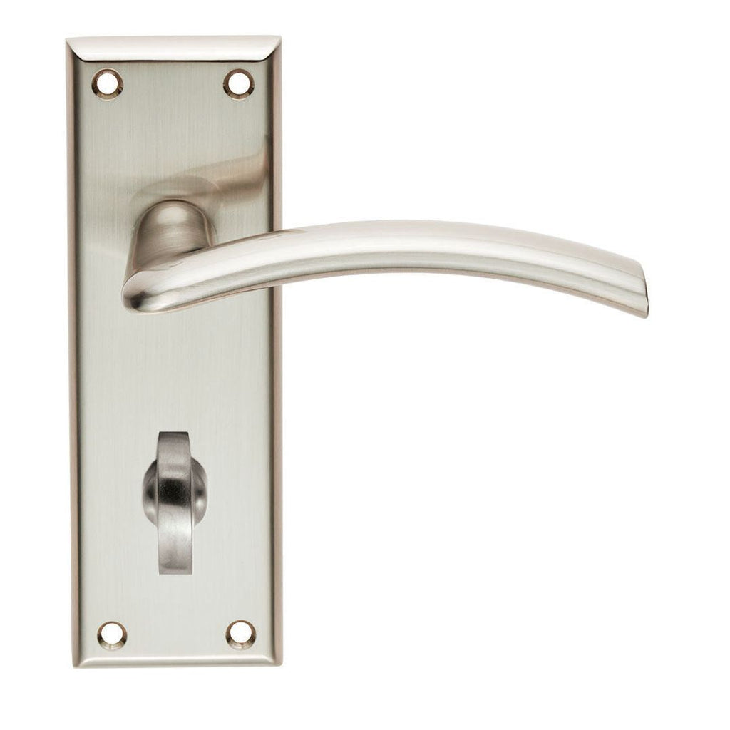 Lever on a chamfered edge rectangular Bathroom backplate. An arched flat style lever with a smooth curved top. A simple elegant designer door handle, sleek and curved lines offer both comfort and visual appeal. Part of the Serozzetta Residential range. Comes with a 10-year mechanical guarantee.