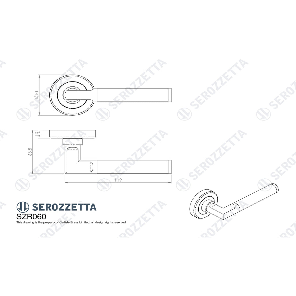 Lever on a chamfered edge concealed fix screw on round rose. A stylish elliptically round bar lever with a dual finish emphasised with etched grooves which highlights the modernistic influence. Part of the Serozzetta Residential range. Comes with a 10-year mechanical guarantee.