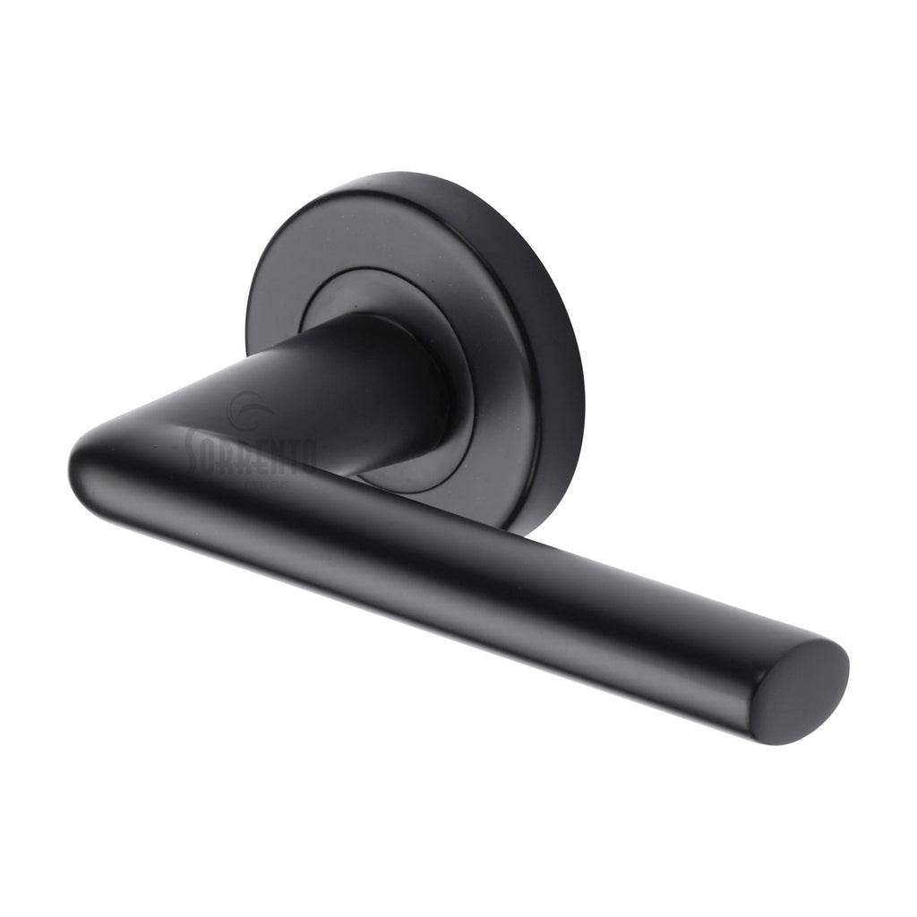 Sorrento Door Handle Lever Latch on Round Rose Lena Design Matt Black finish - SC-2352-BLK