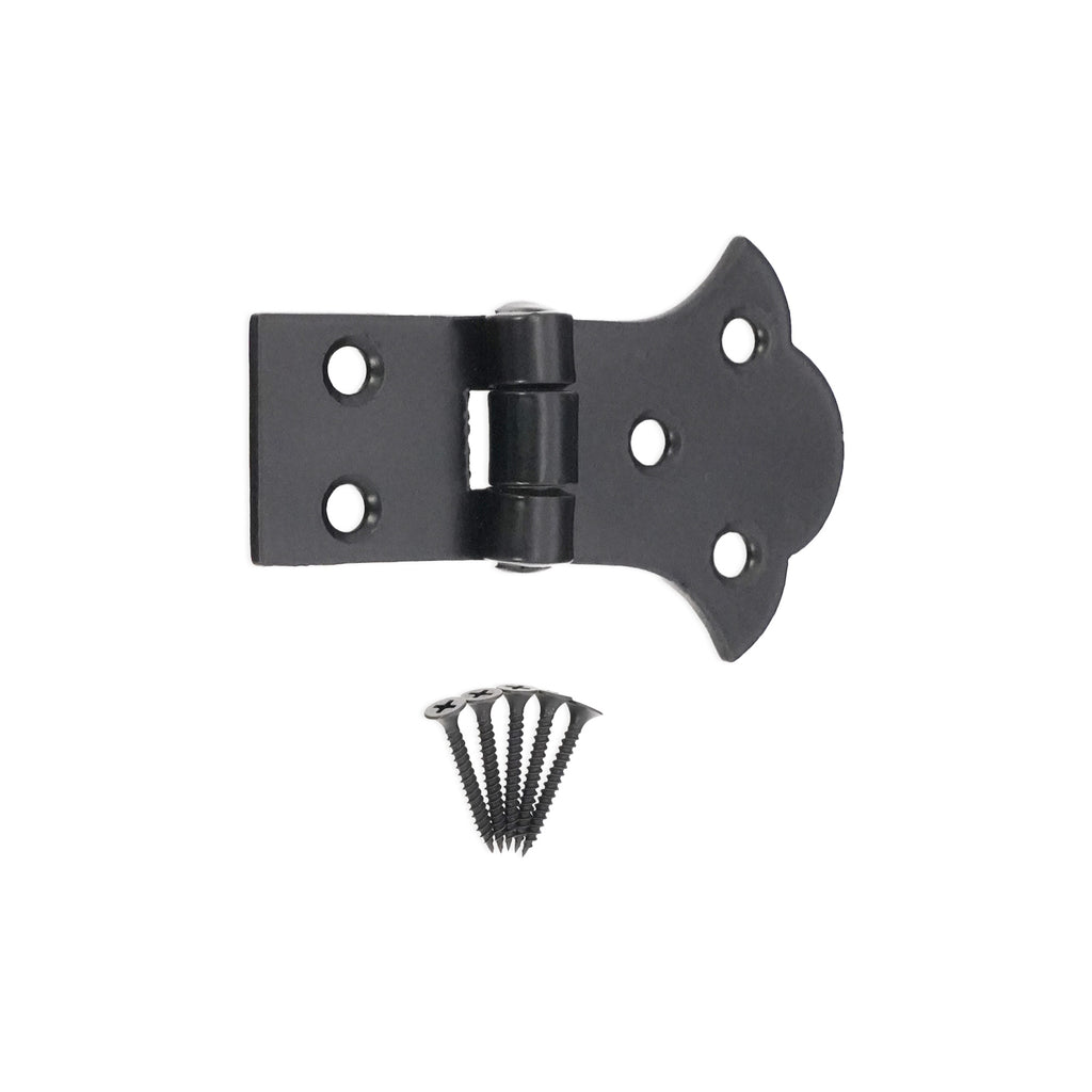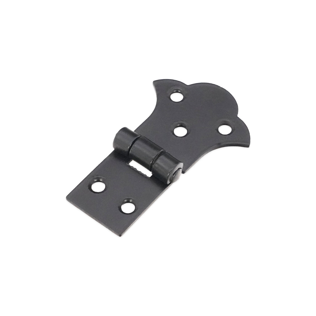 The ‘Butterfly Unequal Hinge’ is handmade from cast iron is a decorative carpentry hinge. They are perfect to enhance any kitchen cupboard door, trinket box or dresser in black powder-coated finish for resistance to corrosion.