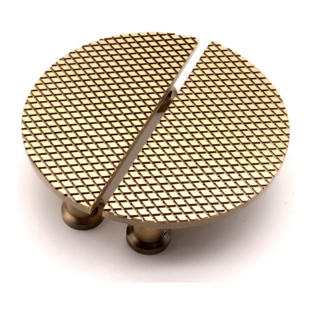 Our modern brushed solid brass construction with a 'Diamond' pattern half moon cabinet handles create a full circle once placed together and bring luxury to any home.