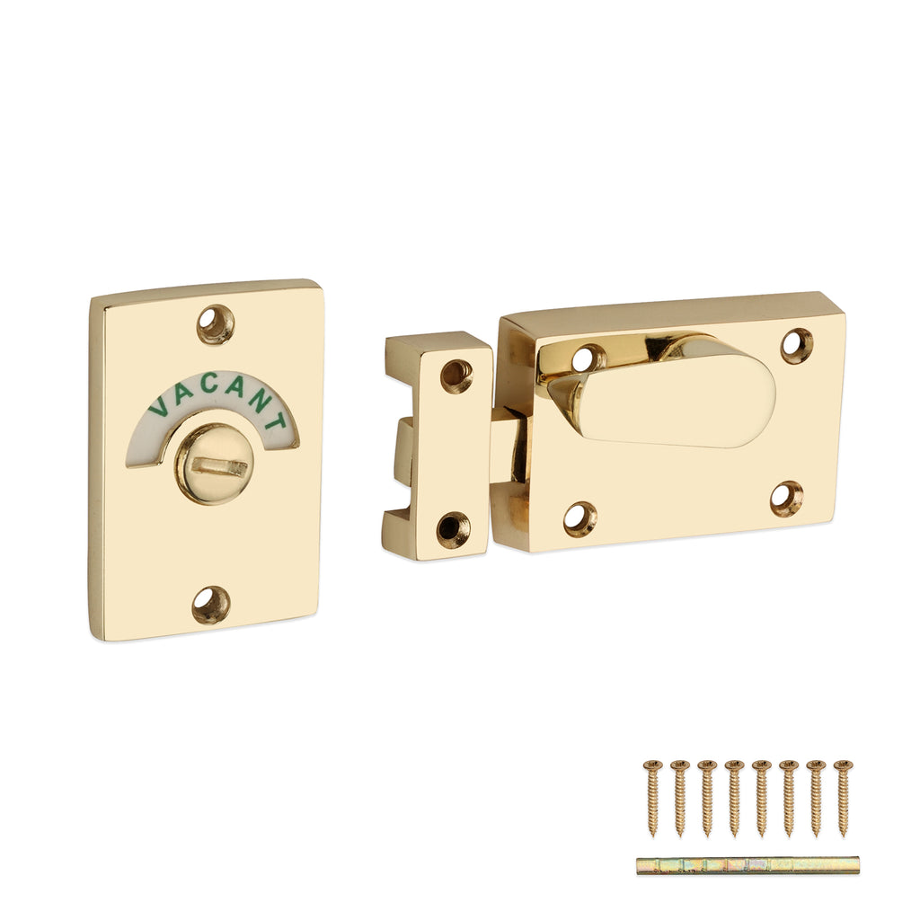 Our premium quality bathroom indicator latch is made of high quality zinc designed for high security with red and green wording vacant/engaged shows whether the room is occupied or free with the benefit of an emergency coin release function from outside of the door. This indicator bolt lock with its 20mm long throw enhances privacy and provides maximum security to your bathroom door.