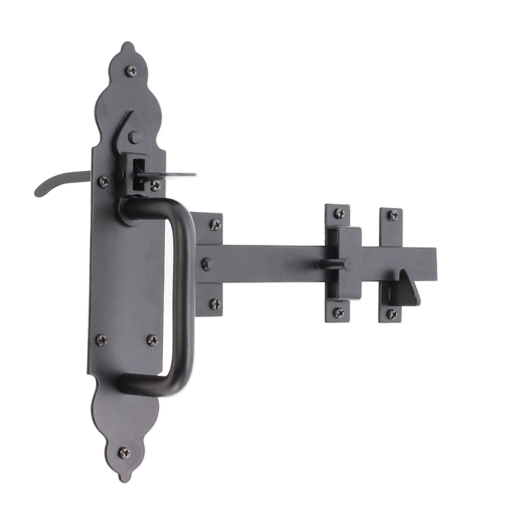 The ‘Gothic Suffolk Latch’ is made with a Steel construction for strength and durability with black powder-coated finish for resistance to corrosion to be used externally or internally to securely close doors, garden gates and shed doors. Accessible from Both Sides of the Gates.