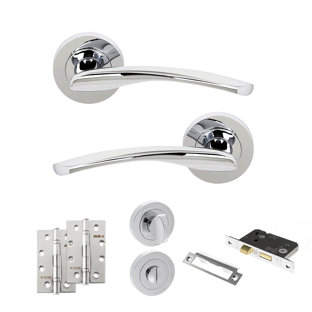 STATUS Arizona Door Handle Pack (Bathroom Set - 2.5" CE Bathroom Lock, 4" Slim Knuckle Hinges x2) - Polished Chrome - ADPS22RPC12