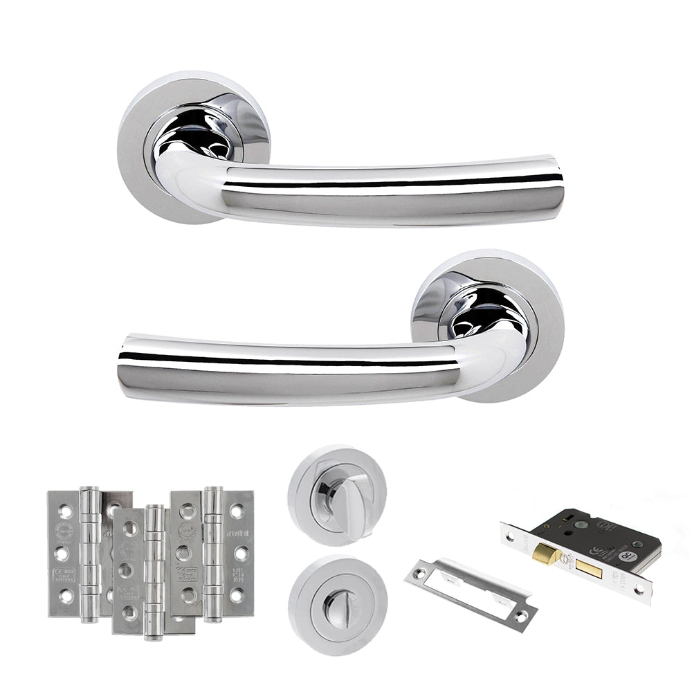 STATUS Nevada Door Handle Pack (Bathroom Set - 3" CE Bathroom Lock, 3" Fire Rated Hinges x3) - Polished Chrome - ADPS21RPC9