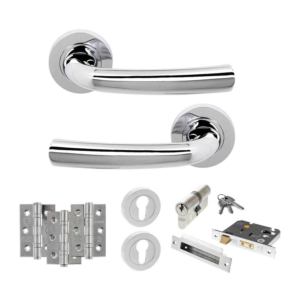 STATUS Nevada Door Handle Pack (Euro Lock Set - 3" CE Sashlock, 3" Fire Rated Hinges x3) - Polished Chrome - ADPS21RPC21